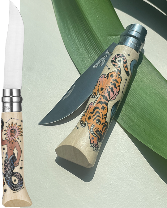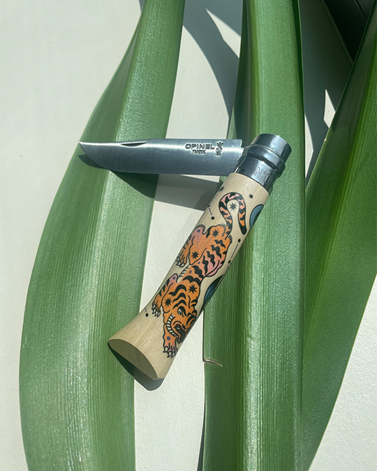 Art by Friends hat mich für dieses Projekt kontaktiert. Ich war begeistert, da ich schon immer mit Opinel zusammenarbeiten wollte. Diese ikonische Marke spricht meine Liebe zu Alltagsgegenständen an, die Geschichte und handwerkliches Können verkörpern. Das hat mich sofort inspiriert!