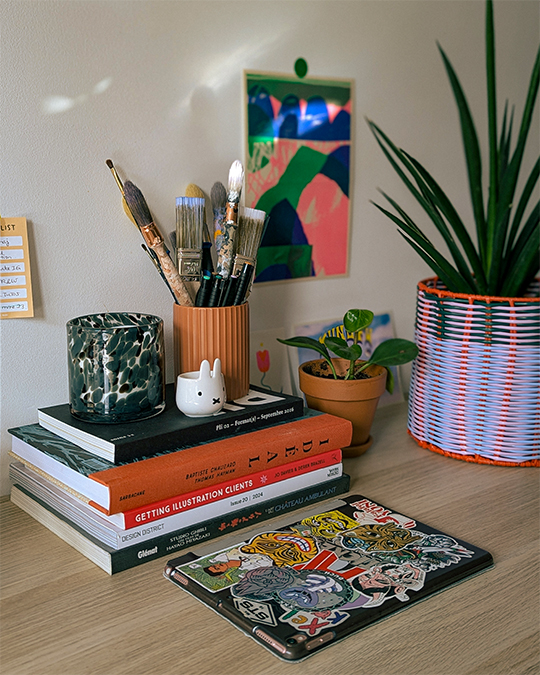 Zunächst war ich Kreativdirektorin in der Werbebranche und bei Live-Shows und konnte so für Künstler wie Pharrell, Major Lazer oder Jain arbeiten. Diese Zeit war sehr prägend. Sie hat mich gelehrt, eine künstlerische Vision zu verfolgen und gleichzeitig mit kreativen Teams zusammenzuarbeiten. Seit 12 Jahren lebe ich zwischen Paris und Montreal, wo ich meine Arbeit in Richtung Illustration und immersive Kunstprojekte erweitert habe. Heute entwickle ich meine visuelle Welt durch Kooperationen mit Marken weiter und bewahre dabei in jeder Kreation meine persönliche Handschrift.