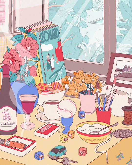 Geschichten erzählen, sich Welten vorstellen, in denen alles möglich ist. Ich liebe die Idee, die Realität neu zu interpretieren und sanftere, nachhaltiere, inklusivere und wohlwollendere Visionen zu präsentieren. Illustrationen machen das möglich: Sie eröffnen einen anderen Blick auf die Welt. Ich erforsche auch gerne viele verschiedene Medien: Gegenstände, Kleidung, Animation usw. Jedes Format bringt eine neue Herausforderung mit neuen Einschränkungen und ist eine neue Art, meine Bilder zum Leben zu erwecken.