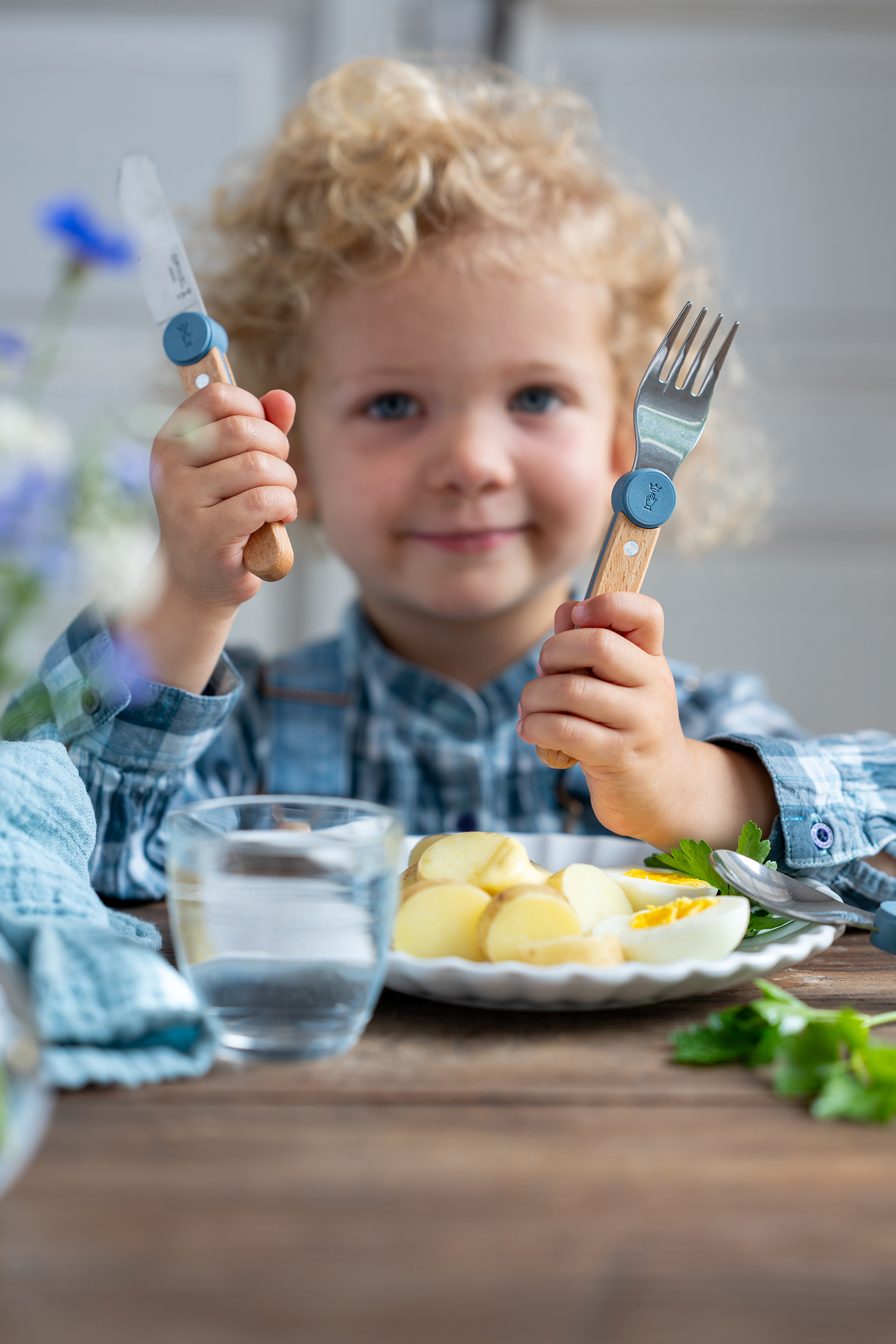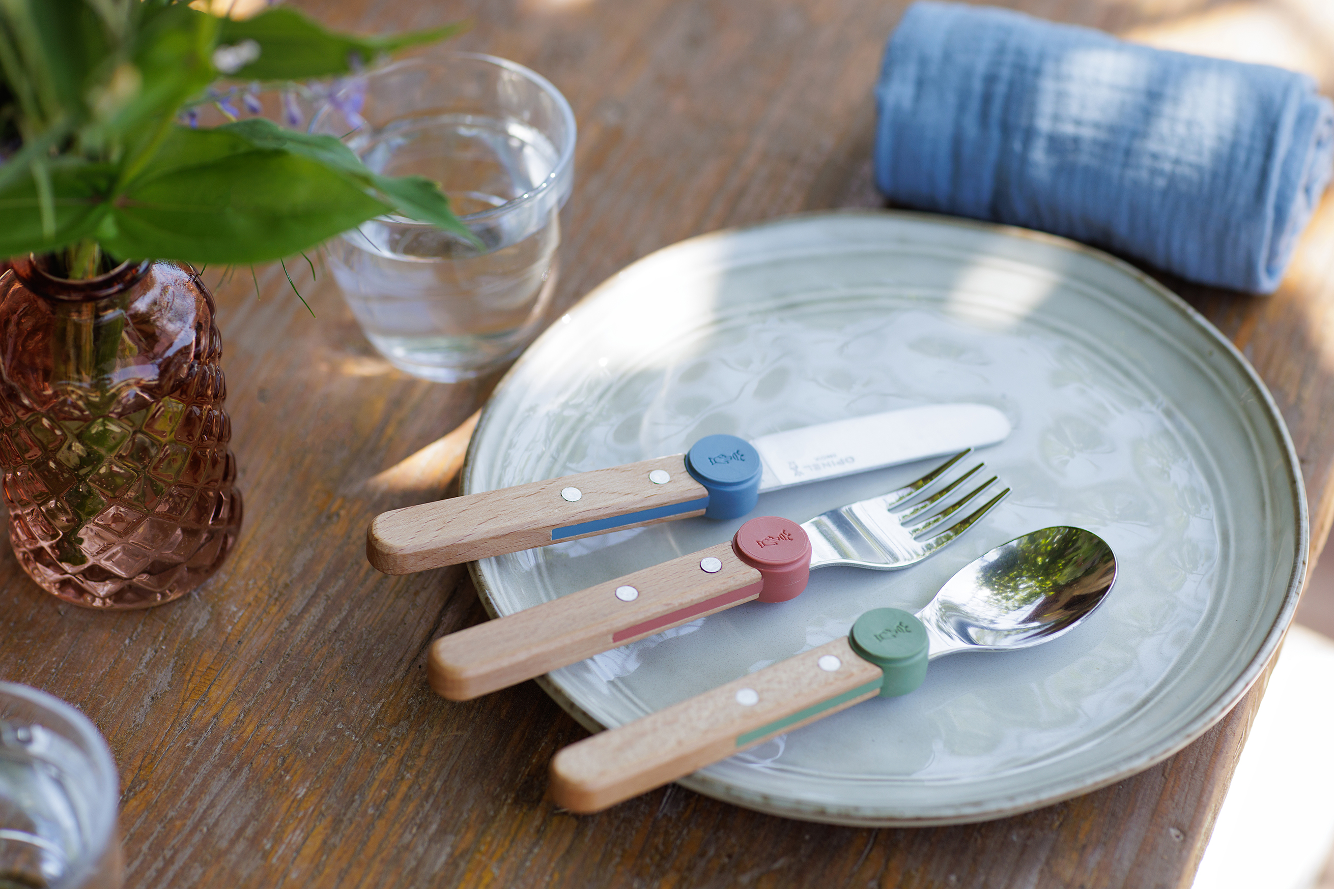 Zunächst einmal durch seine hochwertigen Materialien, seinen bequemen Holzgriff, seine zeitlose Form sowie die praktische Handhabung. Der Clip, mit dem das Besteck nach dem Essen zusammengesteckt werden kann, ermutigt das Kind, es selbst in die Hand zu nehmen und beim Tischdecken zu helfen. Zudem markiert der farbige Akzent am Griff den optimalen Griffbereich und hilft dem Kind, seine Finger gut zu positionieren und dadurch seine Geschicklichkeit zu verbessern. Durch dieses System kann das Besteck auch einfach mitgenommen und transportiert werden – ein Wert, der Opinel sehr am Herzen liegt.