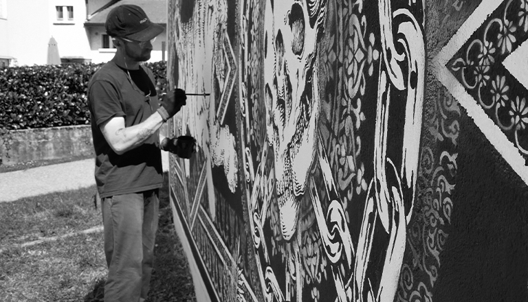 I started drawing when I was very young, then spent quite a few years doing graffiti alongside my studies in visual communications, which helped me to structure my practice and explore other forms of expression. I also worked as a textile designer, before devoting myself fully to a more personal artistic approach.