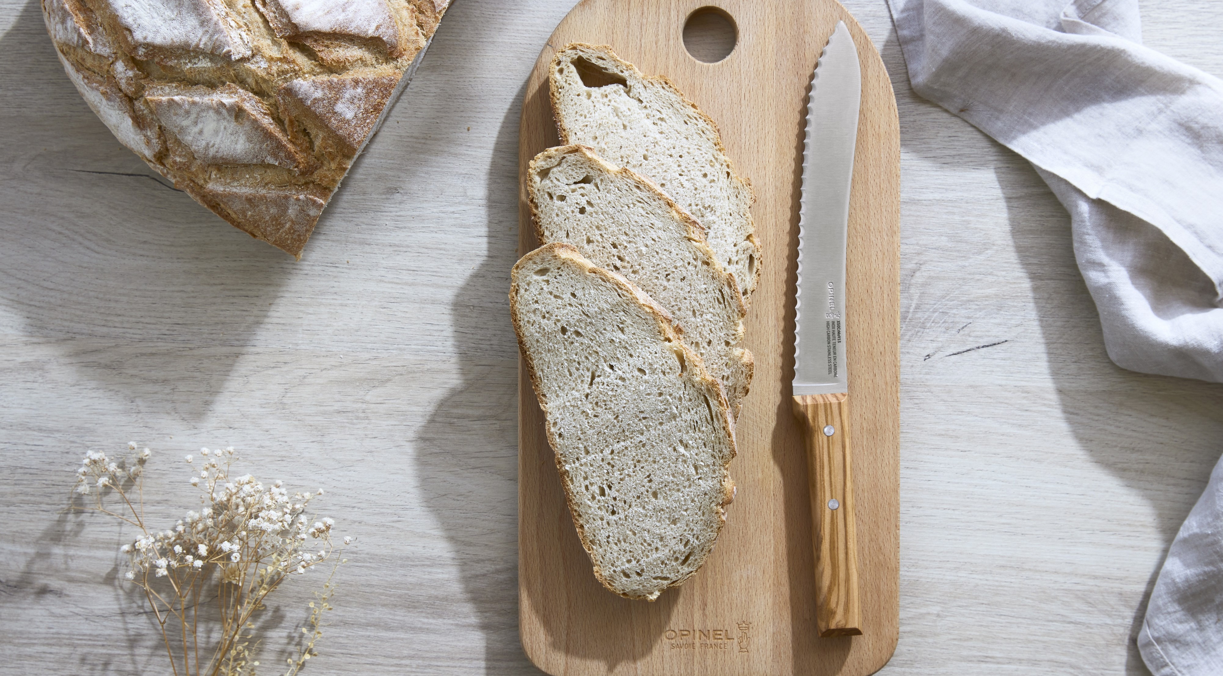 The Olivier Bread Knife combines efficiency and elegance. With its olive wood handle and serrated blade, it's ideal for crusty breads and moments shared around the table.