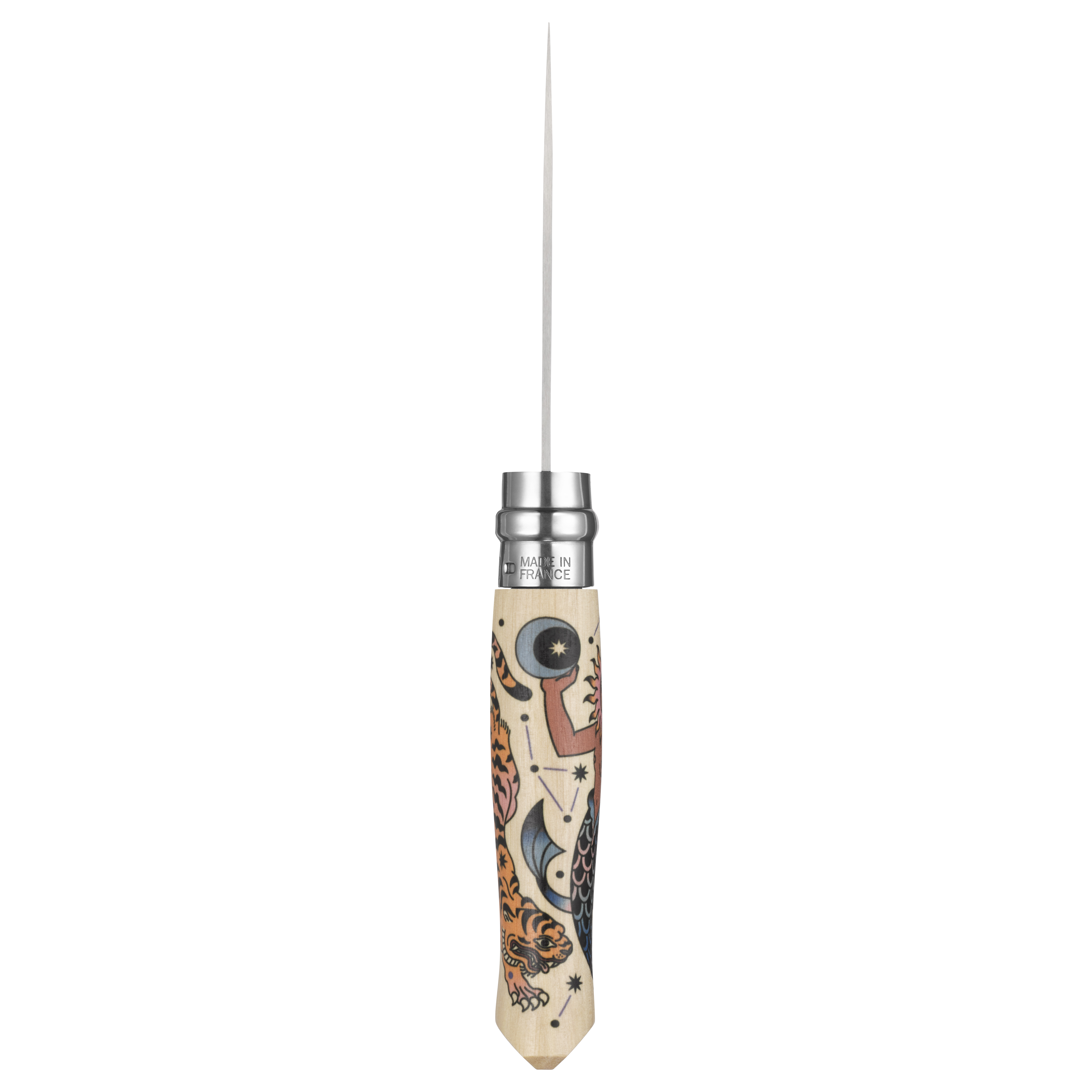 Tous les deux ans, Opinel propose une nouvelle édition en collaboration avec des artistes. L'édition Cosmos est un hommage à cette fascination universelle, à ce lien silencieux entre nous et les étoiles. Pour habiller notre couteau de poche iconique N°08, trois artistes ont exploré le ciel : Dalkhafine, Benjamin Jeanjean et Asile. Édition limitée avec lame numérotée, 8200 exemplaires de chaque modèle.