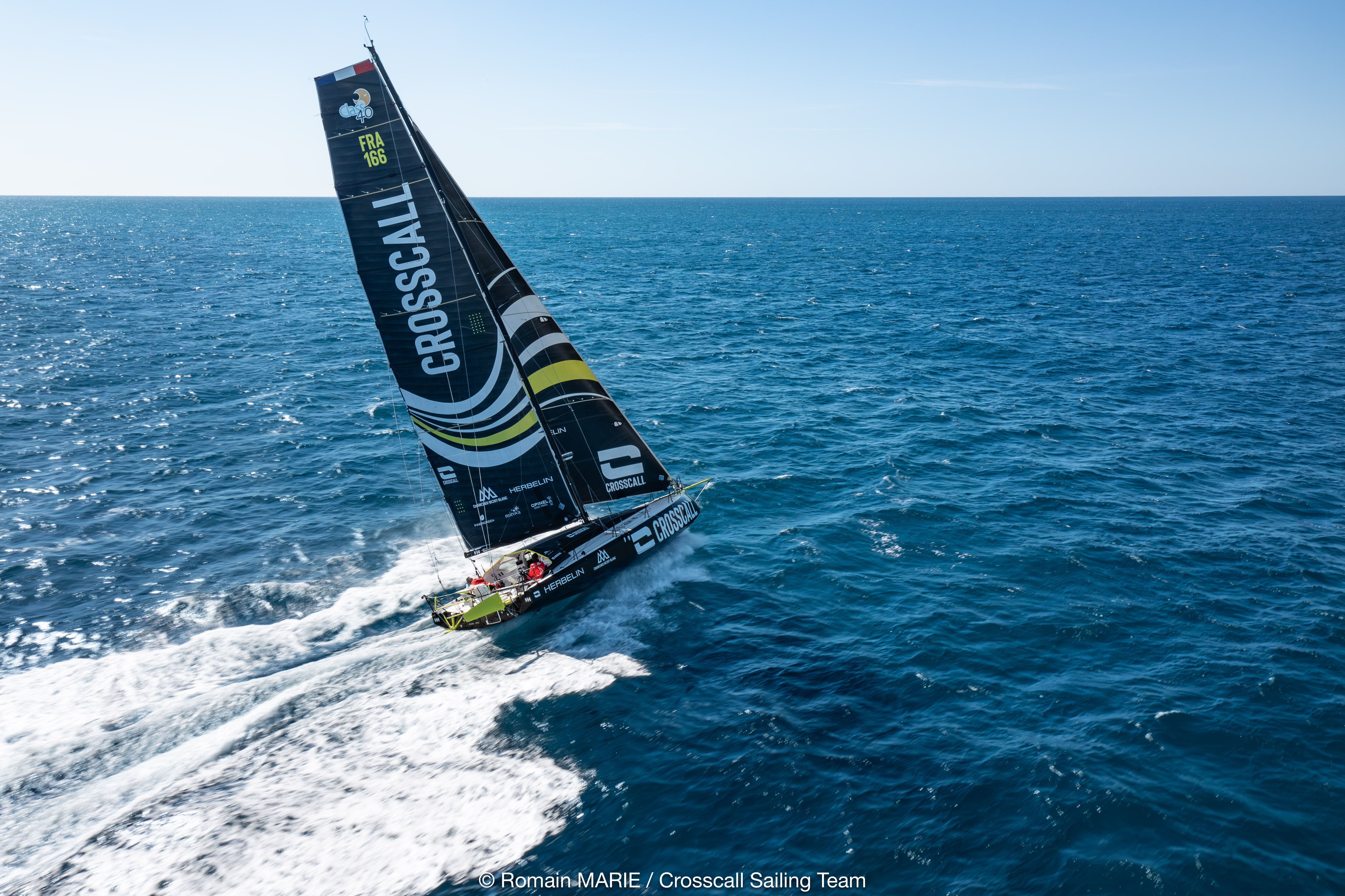 Aurelien Ducroz et Jonathan Chodkiewiez ont pris le départ de la 17ᵉ TRANSAT CAFÉ L’OR Le Havre Normandie à bord du Class40 Crosscall. Une 6ᵉ Route du Café pour Aurélien, une première pour Jonathan — deux marins unis par la passion, le courage et l’envie d’aller toujours plus loin.