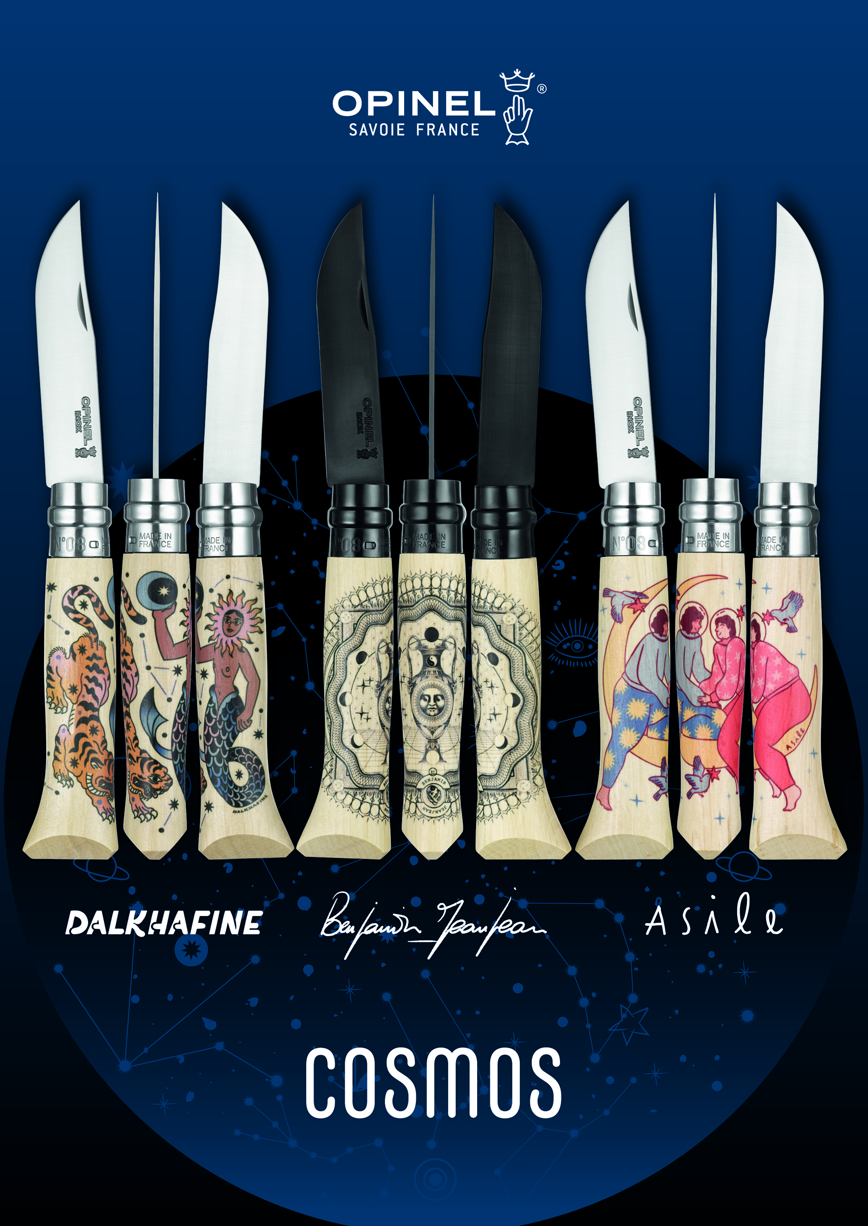 Pour habiller notre couteau de poche N°08 iconique, trois artistes ont exploré le ciel : Dalkhafine, Benjamin JeanJean et Asile.