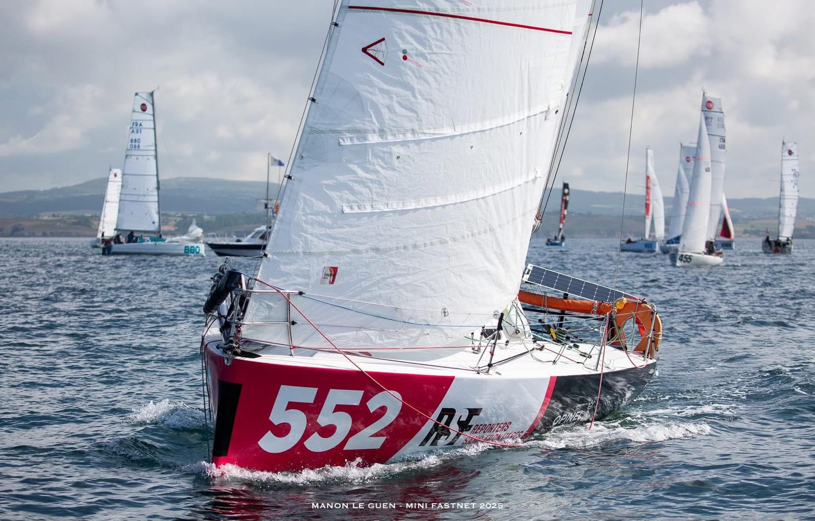 Puis est venu le Mini Fastnet, également en juin. Une course en double qui reste, à ce jour, ma plus belle régate depuis le début de ce projet. Pour cette aventure, j’ai accueilli Louis, un copain et propriétaire d’un Mini comme le mien. L’occasion idéale d’échanger sur nos manœuvres, nos façons de vivre à bord et nos méthodes de réglage. Les conditions météo parfaites nous ont permis de rester toujours dans le match, même face à des bateaux plus récents.