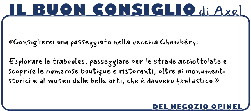 Nell'elegante Rue Croix-d'Or, fra le stradine acciottolate di Chambéry, troverai lo store ufficiale di Opinel. È qui, a due passi da Place Saint-Léger, che ti diamo il benvenuto in uno spazio semplice e accogliente.